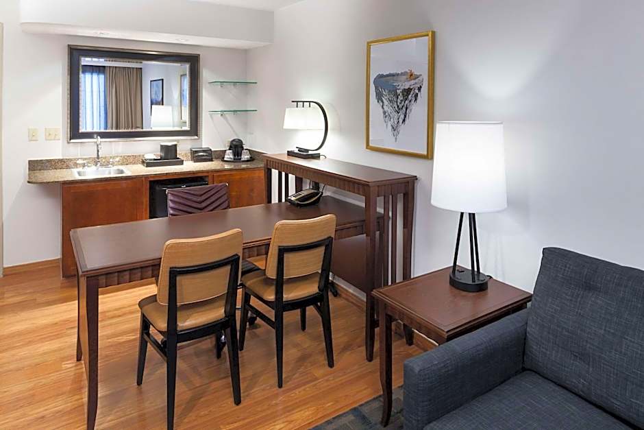 Deluxe one bedroom suite offers a comfortable two room design. Includes a refrigerator, a microwave, two 32-inch TVs and a seating area with a sofa bed.